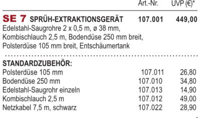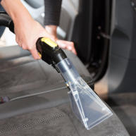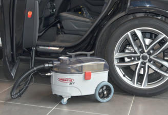 Reinigung von Autopolstern. Mit 4 bar Sprühdruck und 230 mbar Unterdruck reinigt die SE 7 schnell und
