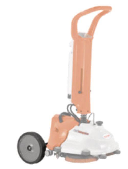Arbeitsposition und die Bedienung der Maschine mit einer Hand unter minimalem Kraftaufwand. Der einzigartige WILLMOP Bediengriff ermöglicht eine uneingeschränkte Bewegung der Maschine um 360°. Die unglaubliche Wendigkeit der Maschine erleichtert die Reinigung von Bereichen, die für herkömmliche Maschinen schwer bzw. nicht zu erreichen sind, wie z.B. Bereiche unter Tischen, zwischen Stühlen, Spül- und Waschbecken usw. Das innovative SENSITIVE TOUCH SYSTEM ermöglicht es, den Handgriff an jeder Stelle zu greifen, um die Maschine zu starten. Wird der Handgriff losgelassen, bleibt der Lenkgriff senkrecht stehen und die Maschine schaltet in den Stand-by-Modus. Ist der Schmutzwassertank gefüllt, werden der Saugmotor ausgeschaltet und die Absaugleiste angehoben. Der Schmutzwassertank lässt sich sehr einfach abnehmen und entleeren. LCD-Anzeigen von Ladezustand, Spannung und Betriebsstunden. Lieferbar mit Bürsten und/ oder Padmitnehmern (Treibtellern).